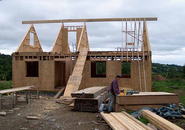 waren, gibt sich der August alle Mühe nicht zurückzustecken.Immerhin haben wirs aber in den letzten zwei Wochen geschafft, die Giebelwände aufzustellen und konnten heute endlich mit dem Dachstuhl anfangen.