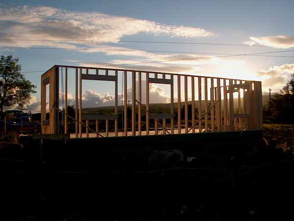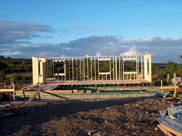 Der Vorteil am Holzhaus ist die schnelle Bauweise. in nur 2 Tagen haben wir schon eine beträchtliche Menge Haus gebaut.Die Bodenplatte ist leider noch nicht