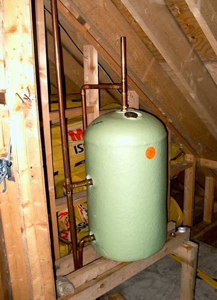 Hier ist der Warmwasserspeicher. Und obwohl ich etwas Bammel hatte, ist das Klempnern