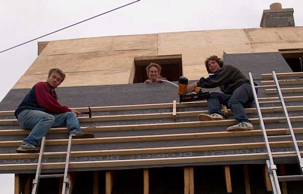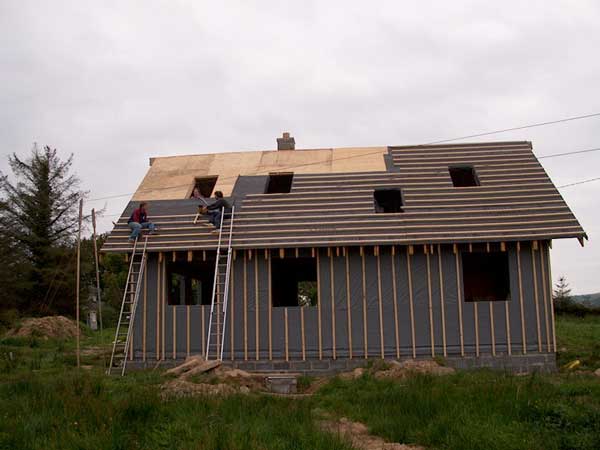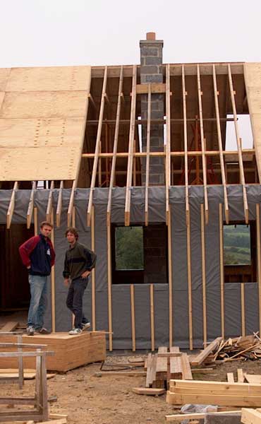 Der Rohbau nähert sich der Vollendung. Hier der Kamin in seiner vollen Pracht. Saubere Dachaktion. Nächste Woche kommen Dach und Fenster.