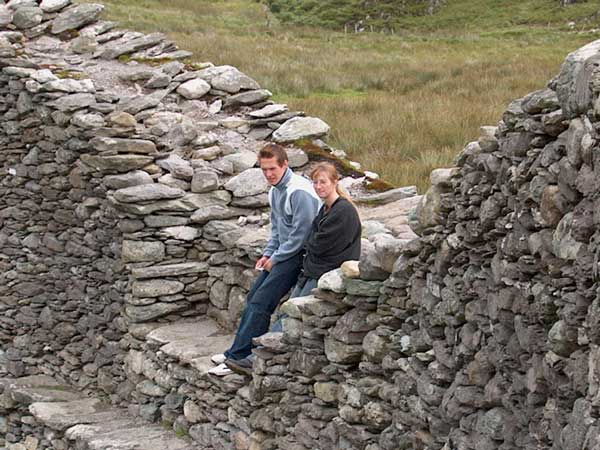 Kerstin und unser treuer Helfer Michi am Staigue Fort nahe Caherdaniel.